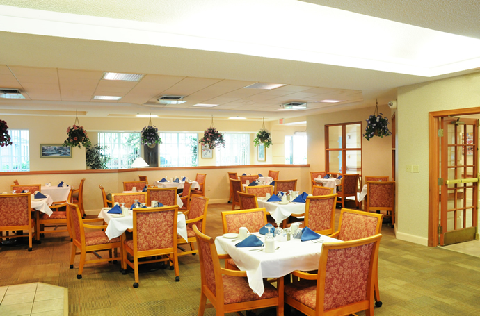 Afternoon activities offered range from card games, discussion groups, Bingo, movies to a weekly happy hour providing entertainment and desserts. Evening activities start with a delicious four course dinner in the Dining Room followed by social activities. Each month we provide an elegant dining experience complete with shrimp cocktail, prime rib and twice baked potatoes as just one example!